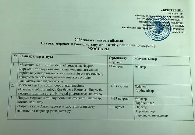 "Балауса"бөбекжай-балабақшасының жылдық жоспары бойынша...