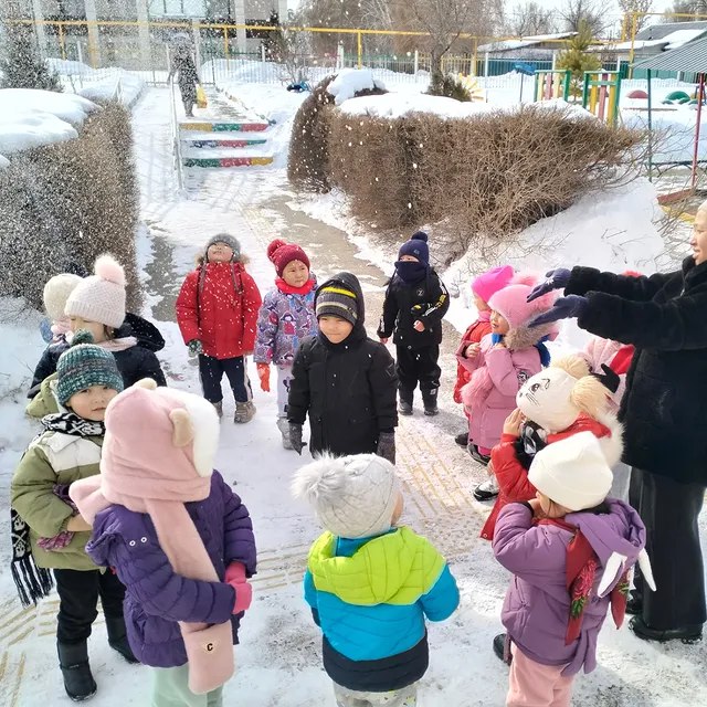 Көксу ауданы, Балауса балабақшасында "Күншуақ" ересектер тобында " Қысқы серуен" тақырыбында балалармен серуен ұйымдастырылды.