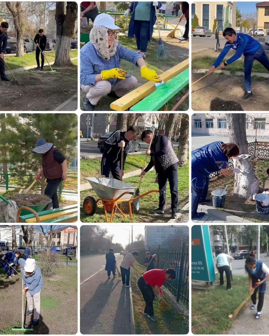 "Таза Қазақстан” “Жасыл аймақ” экологиялық акциясы бойынша аула тазарту жұмыстары жалғасып, көшет, гүл түптері отырғызылуда.