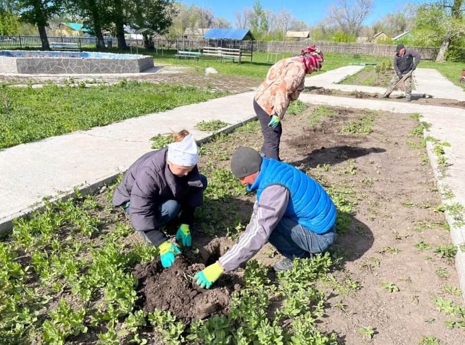 Таза Қазақстан” “Жасыл аймақ” экологиялық акциясы бойынша білім беру ұйымдарының қызметкерлері айналаны қоқыстан тазартып, көшет түптерін отырғызуда.